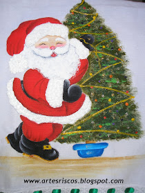 * Pano de prato com o tema de Papai Noel (Esse pano de prato foi pintado por mim)