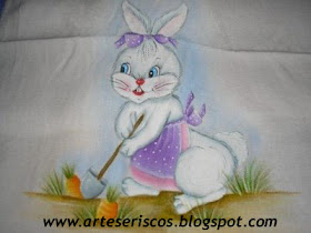 * Pano de prato com o tema de Coelha colhendo (Esse pano de prato foi pintado por mim)