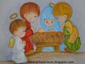 * Pano de prato com o tema de Presépio (Esse pano de prato foi pintado por mim)