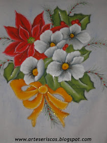 * Pano de prato com o tema de Buquê de Natal (Esse pano de prato foi pintado por mim)