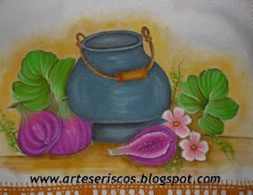 * Pano de prato com o tema de Figos (Esse pano de prato foi pintado por mim)