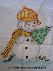* Pano de prato com o tema de Boneco de Neve (Esse pano de prato foi pintado por mim)
