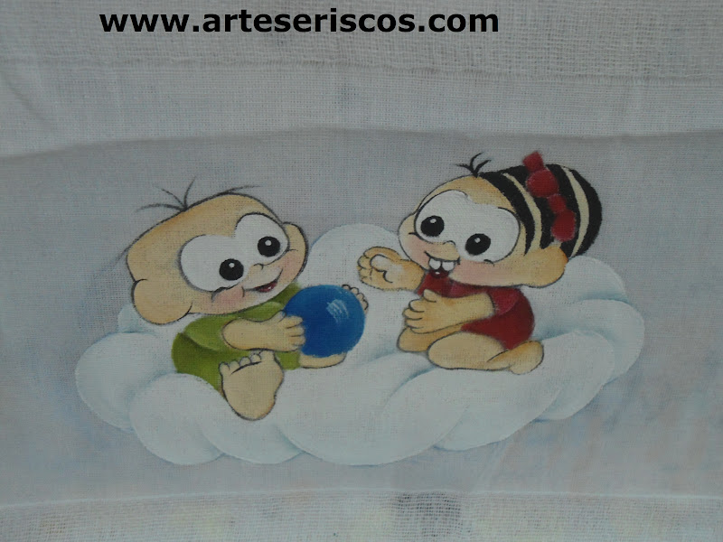 * Fralda com o tema de Monica e Cebolinha - peguei esse risco no blog da Dina Gomes "www.dinaartes.blogspot.com" (Essa fralda foi pintada por mim)